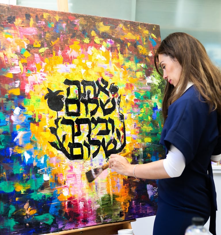 I am Sharon Rose, a London artist exploring light and shadow and creating vibrant Judaica and Jewish art. My work can be found across the world in homes, shuls and community centres and has been collected by Lords and royalty. My paintings has been featured in British Vogue and my articles in Huffington Post. My professional portfolio can be seen at sharonroseart.com.